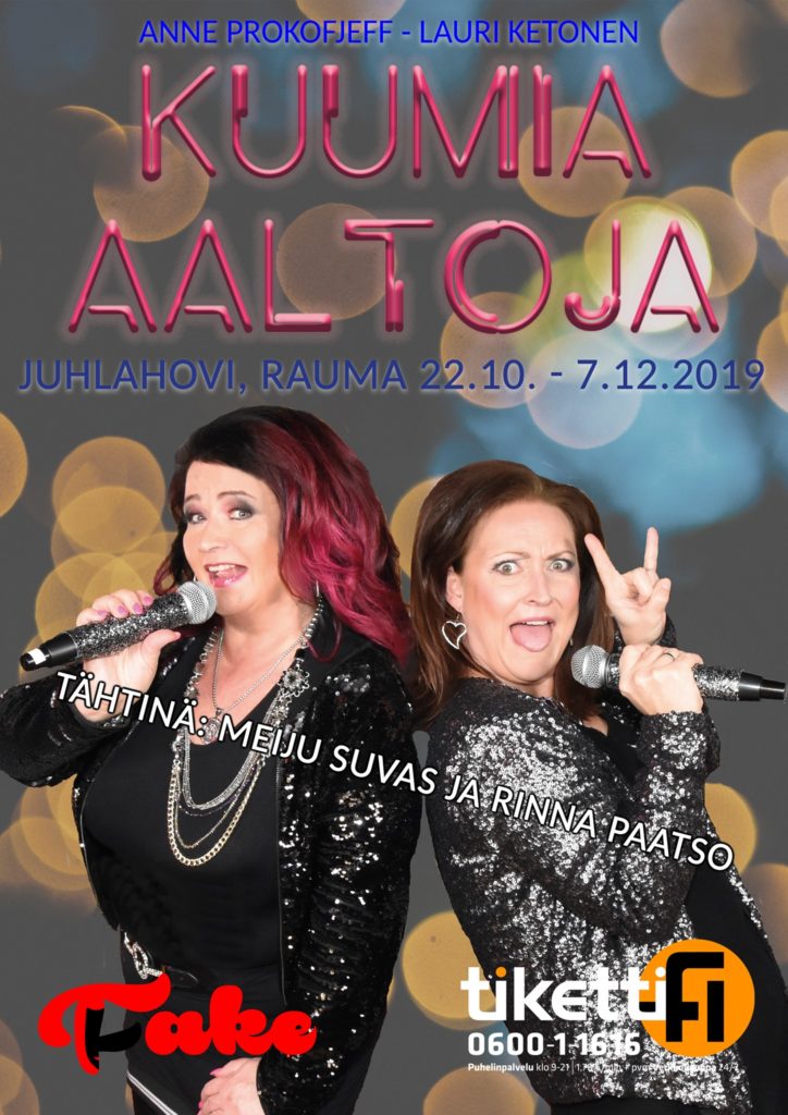 Hävyttömän hauska karaokeshow! Nyt Peto on irti ja Vanha nainen hunningolla, sillä tässä teatteriesityksessä kajahtavat ilmoille kaikkien tuntemat kappaleet kuten Hengaillaan, Paratiisi sekä Oon voimissain! Yleisö saa laulaa mukana! Supernaiset Meiju Suvas ja Rinna Paatso tarjoavat täyslaidallisen komediaa, liikutuksen kyyneleitä ja värisyttäviä hittibiisejä, esityksessä joka tempaa yleisön mukaansa Aikuisten naisten elämään.Kuumia aaltoja on musiikkikomedia karaokesta, […]